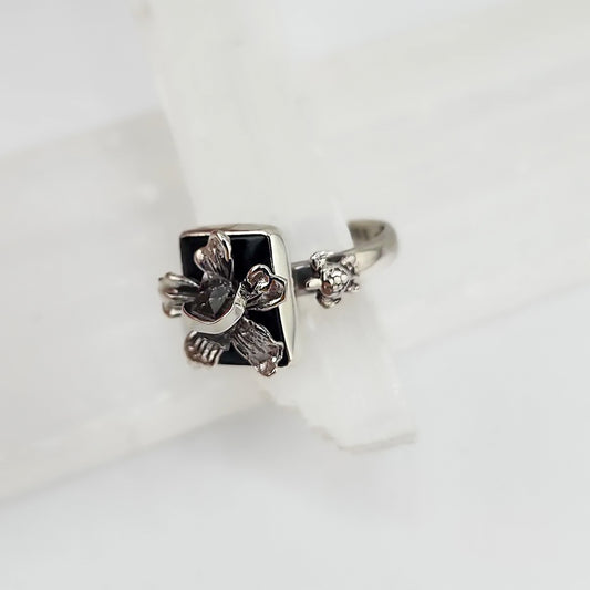 S.S. Shlomo Black Onyx and Herkimer Diamond Flower Rings