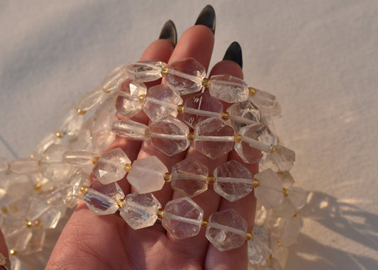Faceted Clear Quartz Hexagon Beads