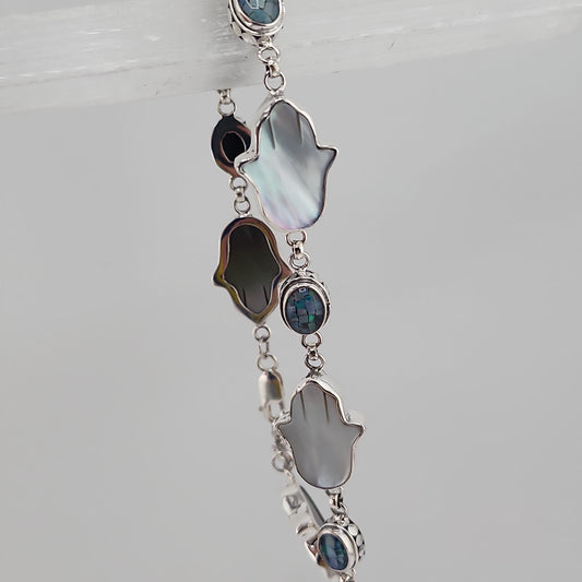 S.S. AAA Grade Mother of Pearl and Australian Opal Hamsa Bracelets
