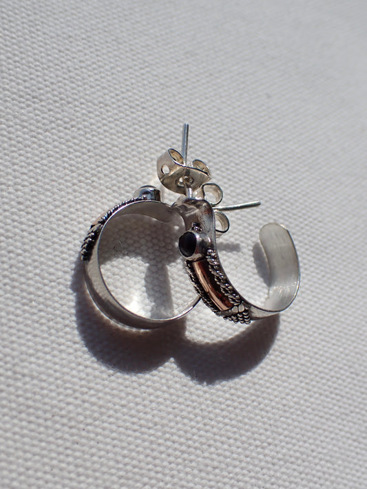 S.S. 18k Gold Plated Black Tourmaline Hoop Earrings