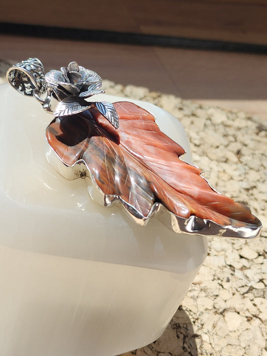 S.S. Shlomo Hand Carved Red Jasper Leaf