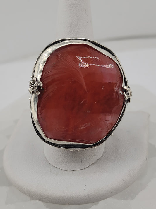 S.S. Shlomo Adjustable Raw Cherry Quartz Ring
