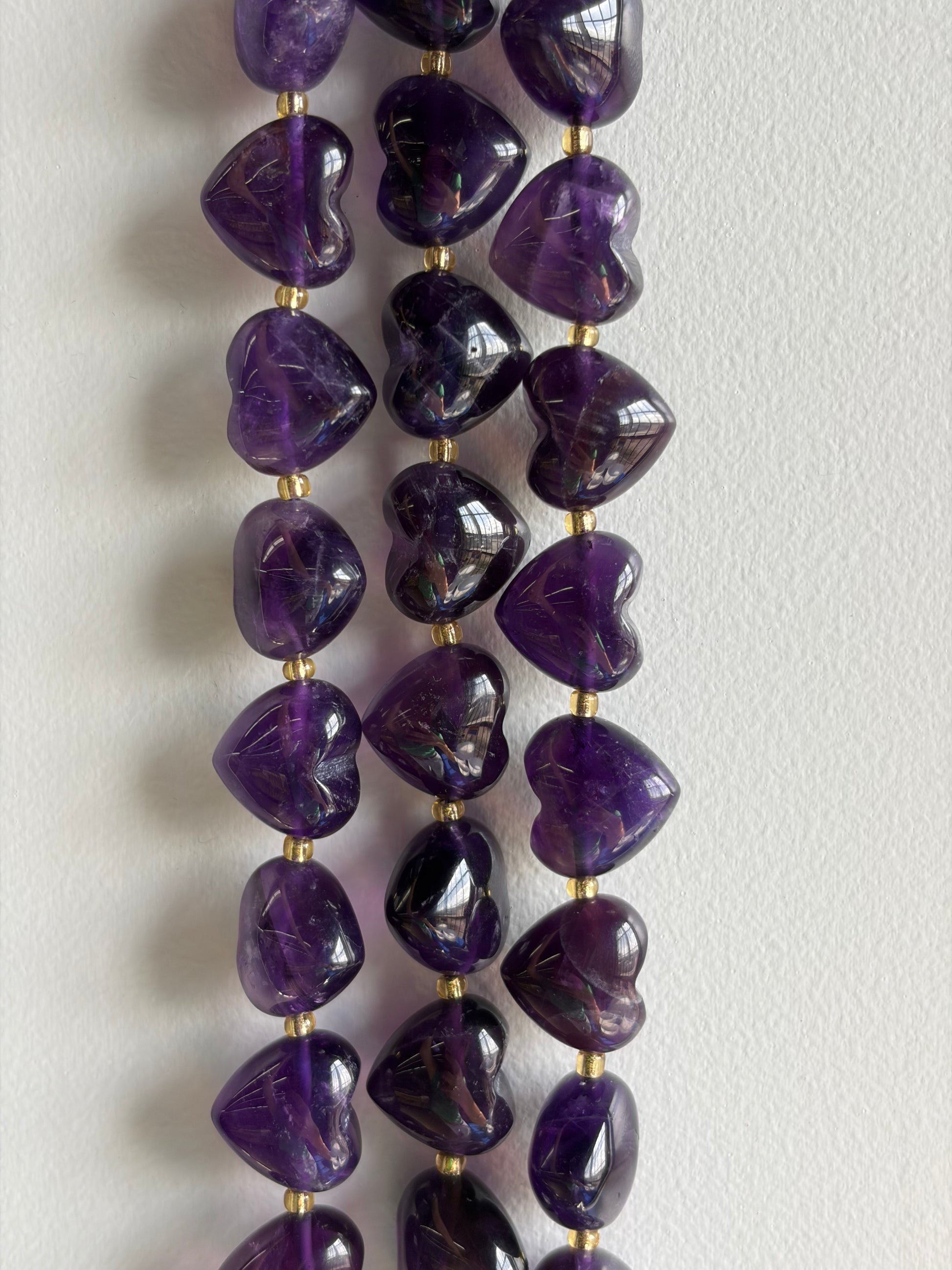 High quality amethyst rounded heart beads. Amethyst is said to increase serenity, stress relief, calming,and intuition.