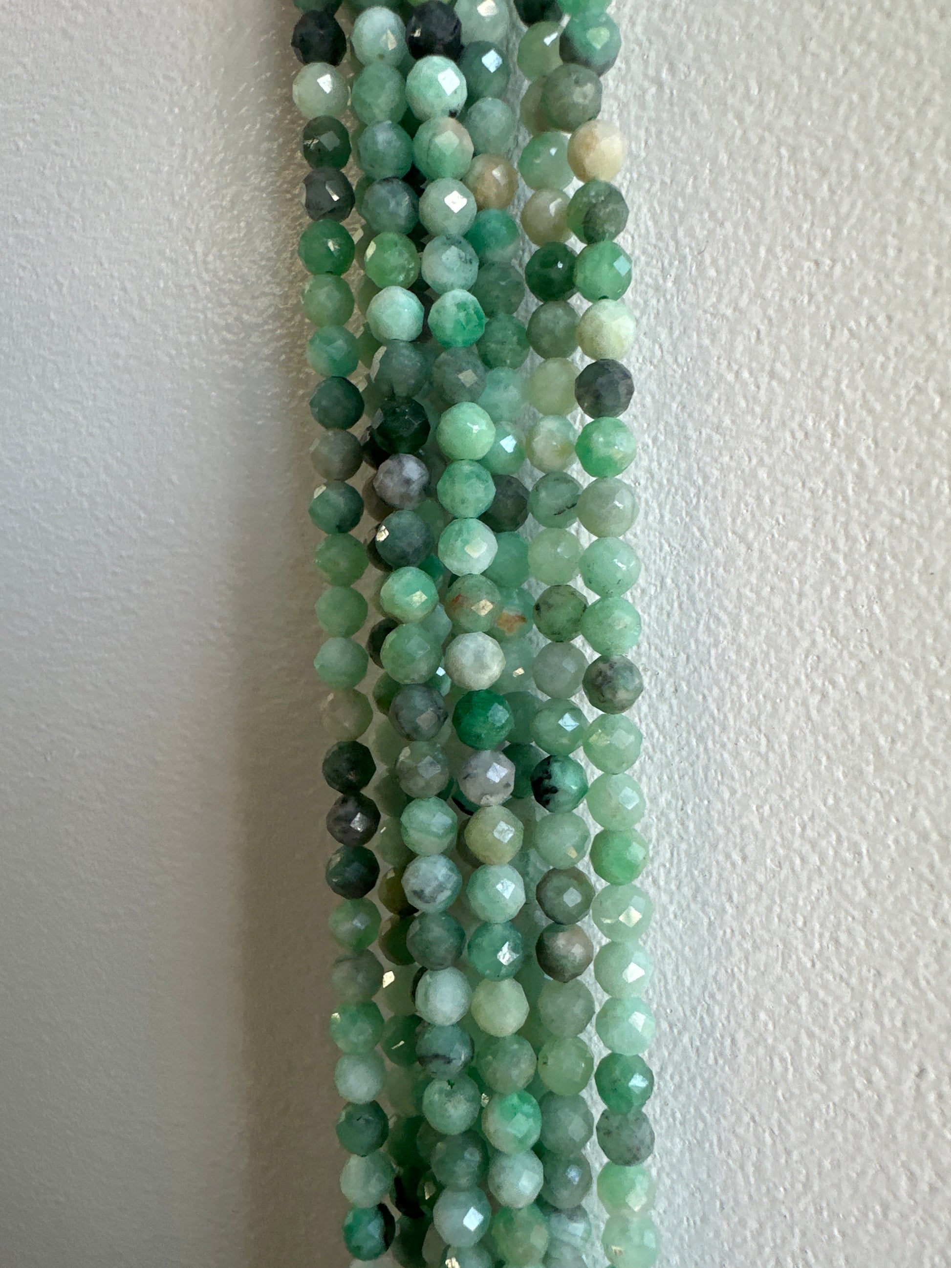 Emerald from Colombia is said to nurture the heart and soul, helping to manifest love and harmony. These emerald beads are faceted to showcase its natural colors ranging from green to black.