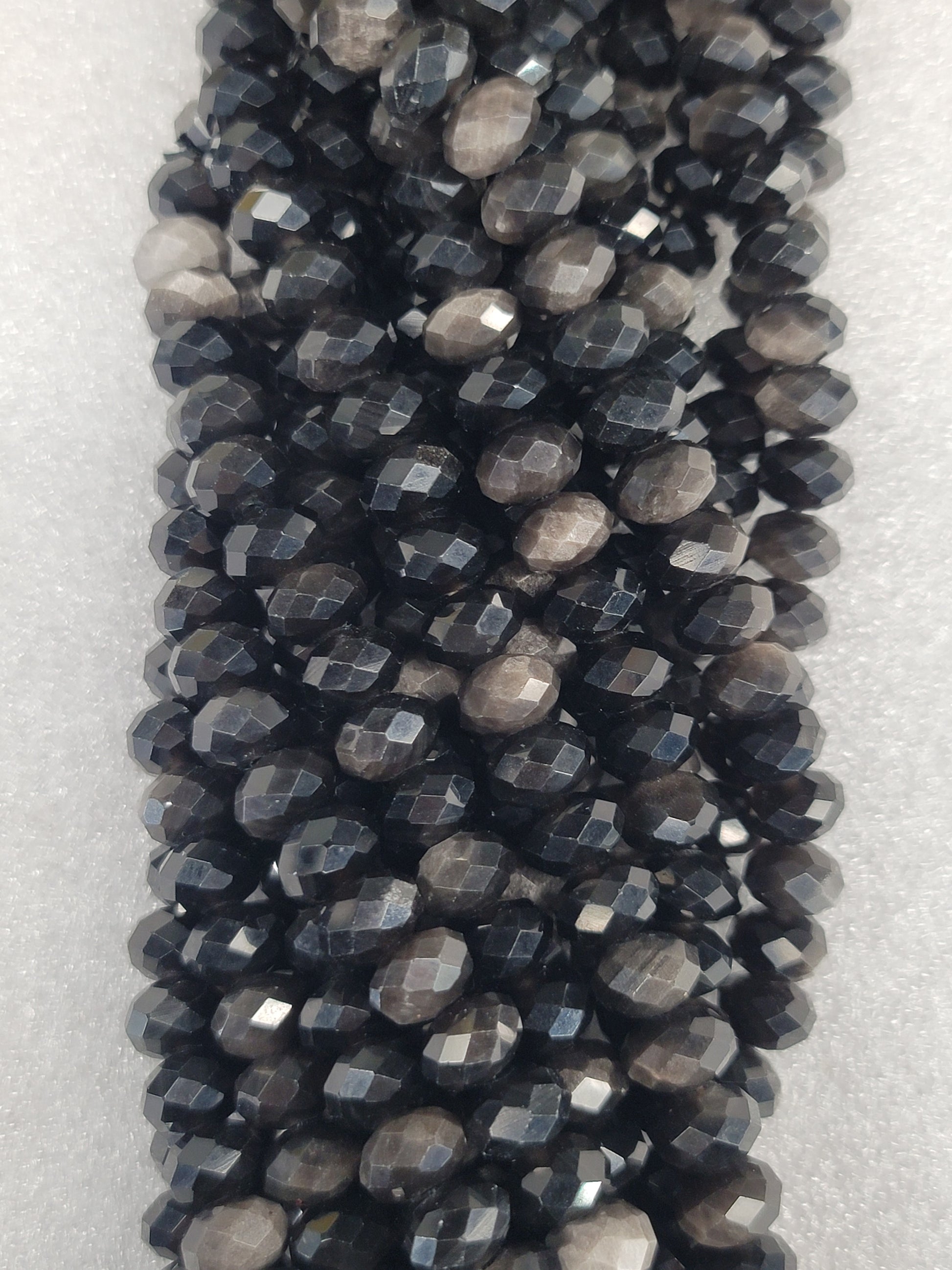Faceted Silver Sheen Obsidian Rondelle Beads