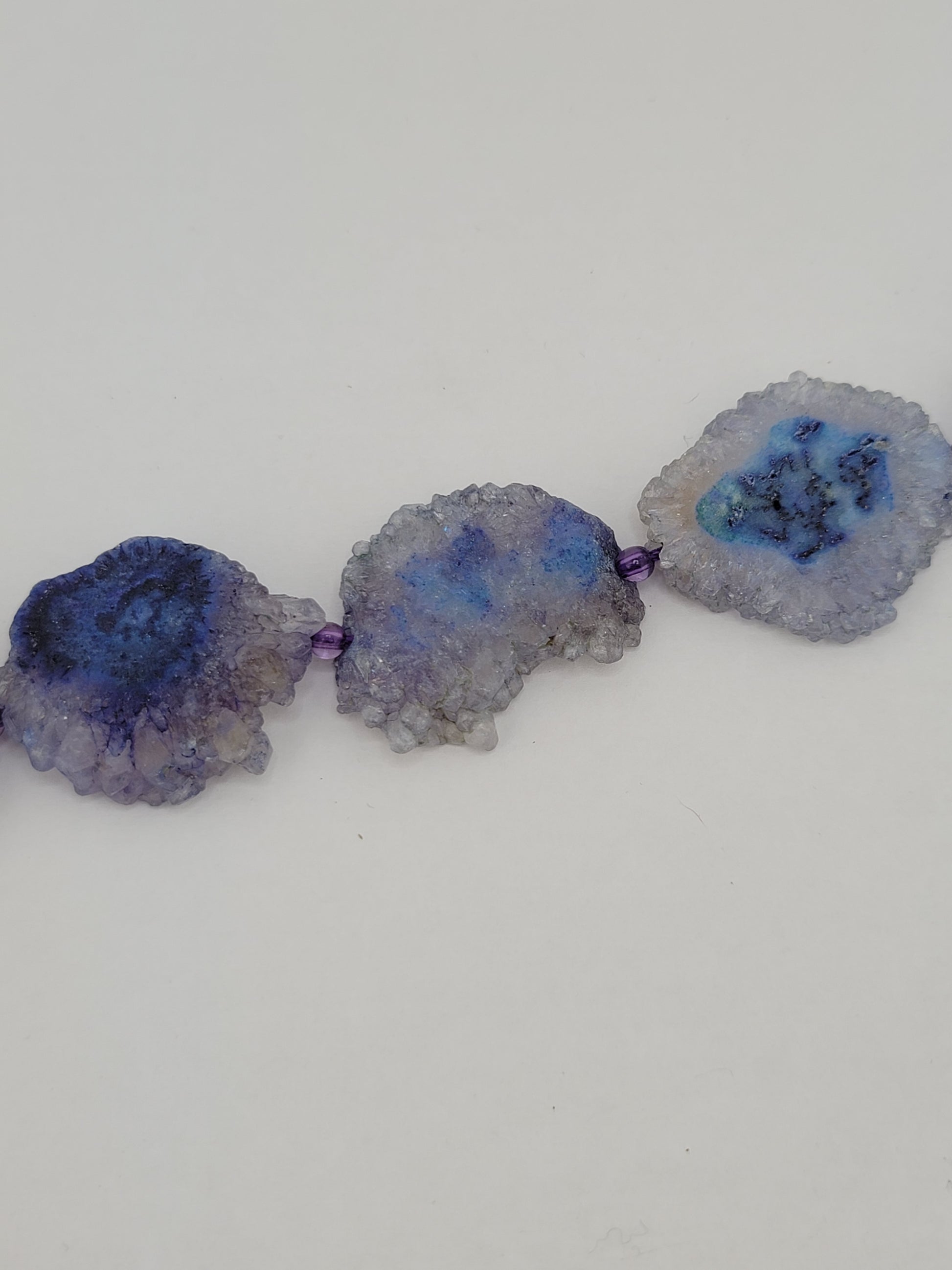 Sunflower shaped indigo agate slices.