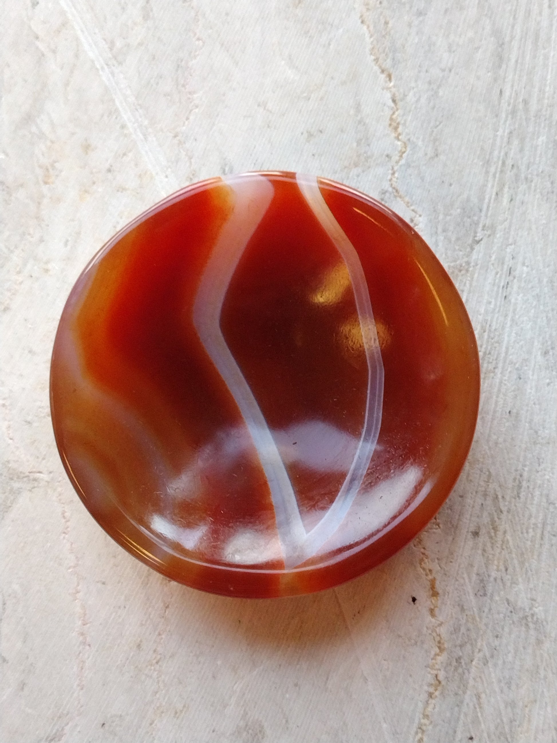 Red sardonyx, also known as red line agate or carnelian, is carved into a small bowl.