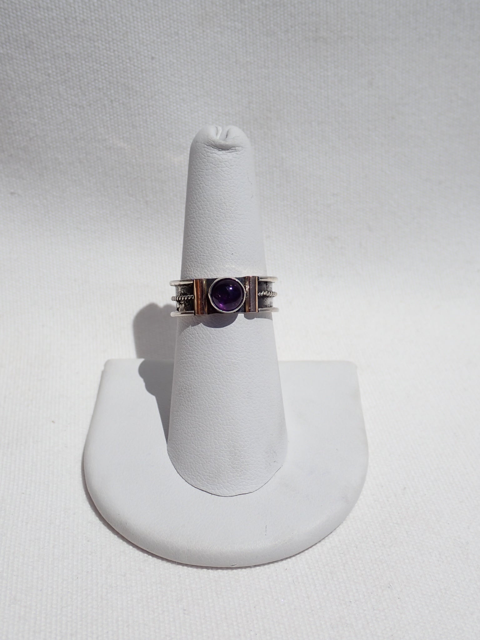 A sterling silver amethyst ring with 18k gold accents. Balinese artisans design the gorgeous gold-accented ring suit for any occasion and time of day.