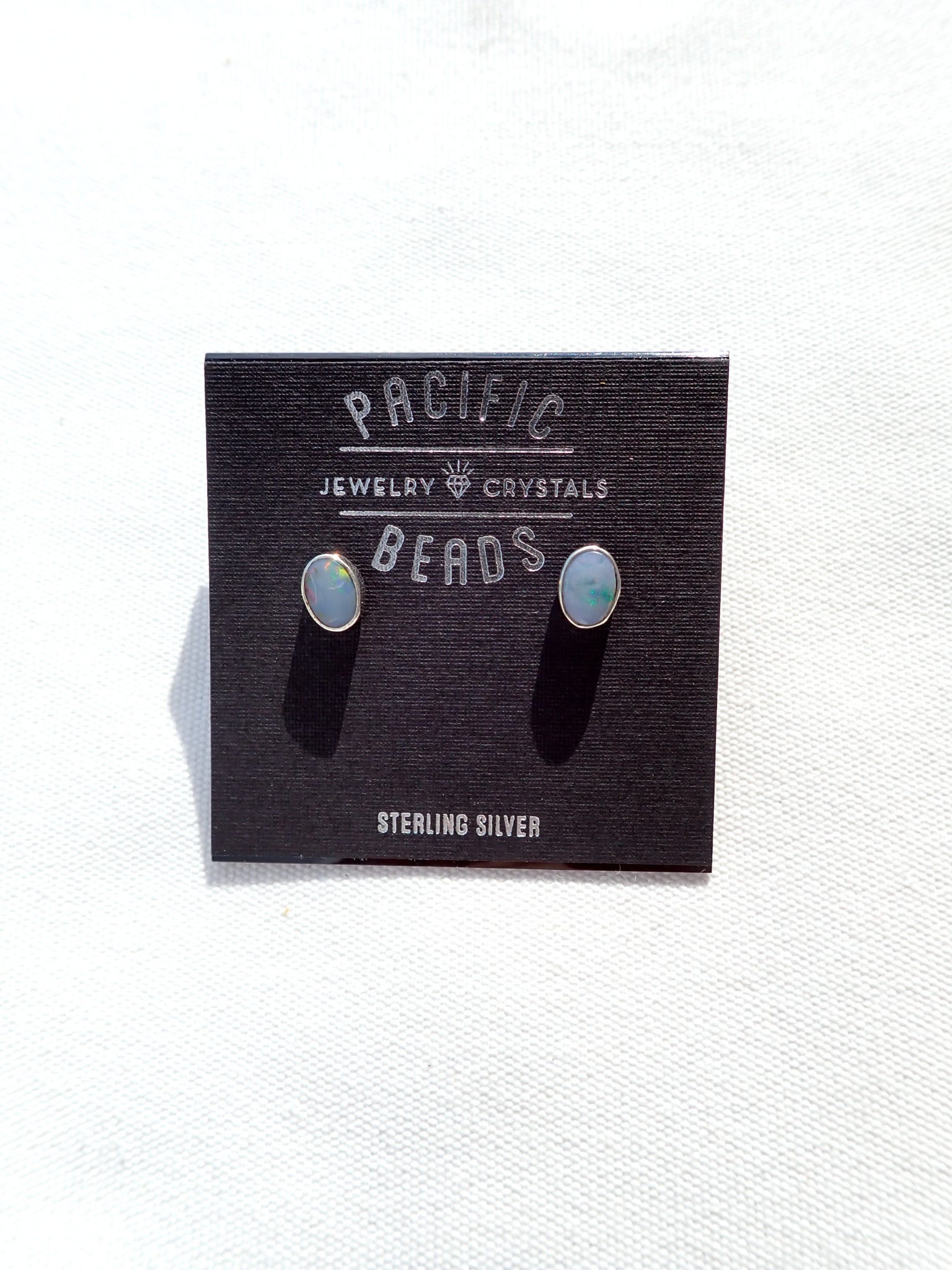 Oval cut Australian opal as sterling silver stud earrings. Australian opal is thought to have a