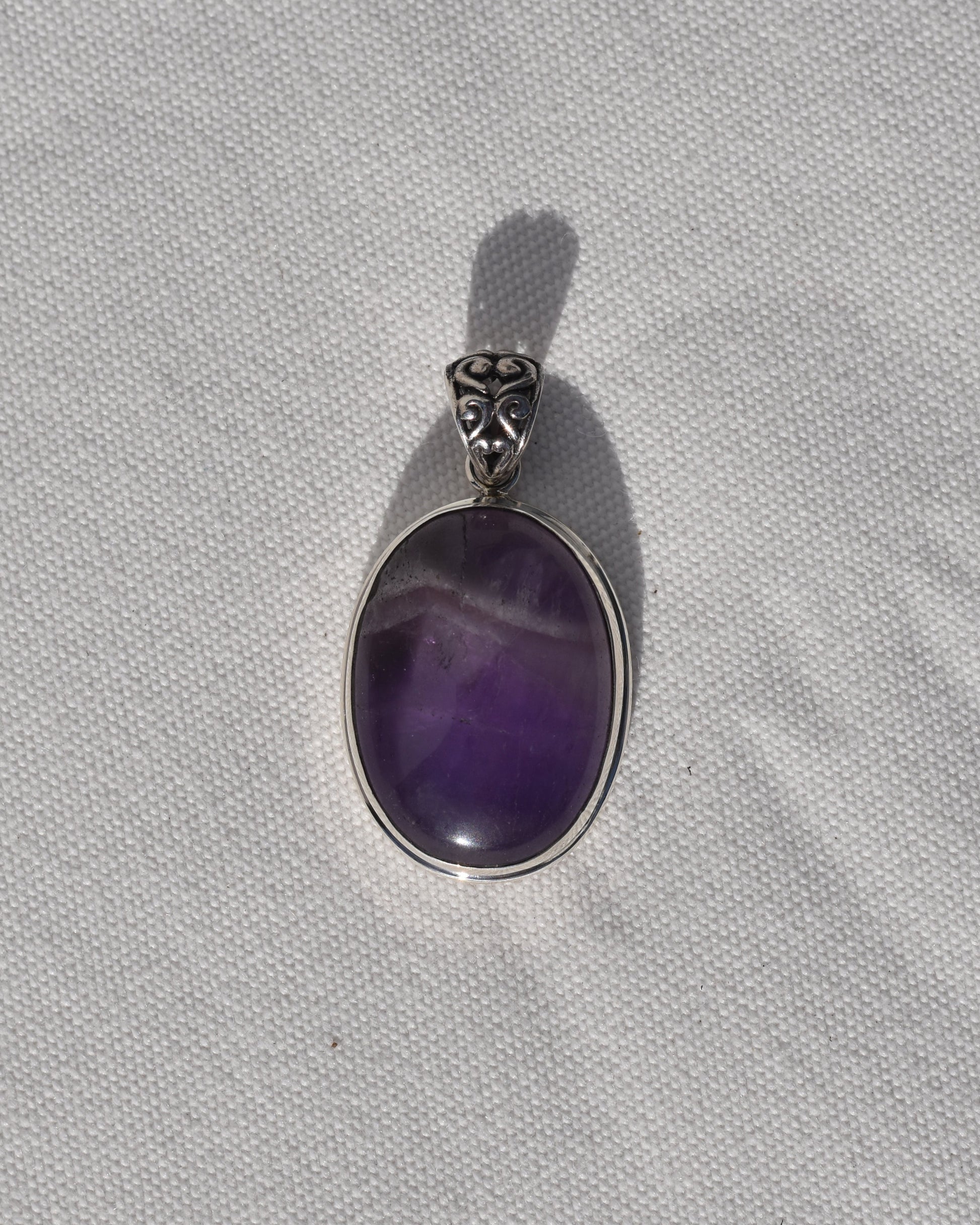 A sterling silver chevron amethyst pendant beautifully showcases the distinctive lines in this crown chakra stone.