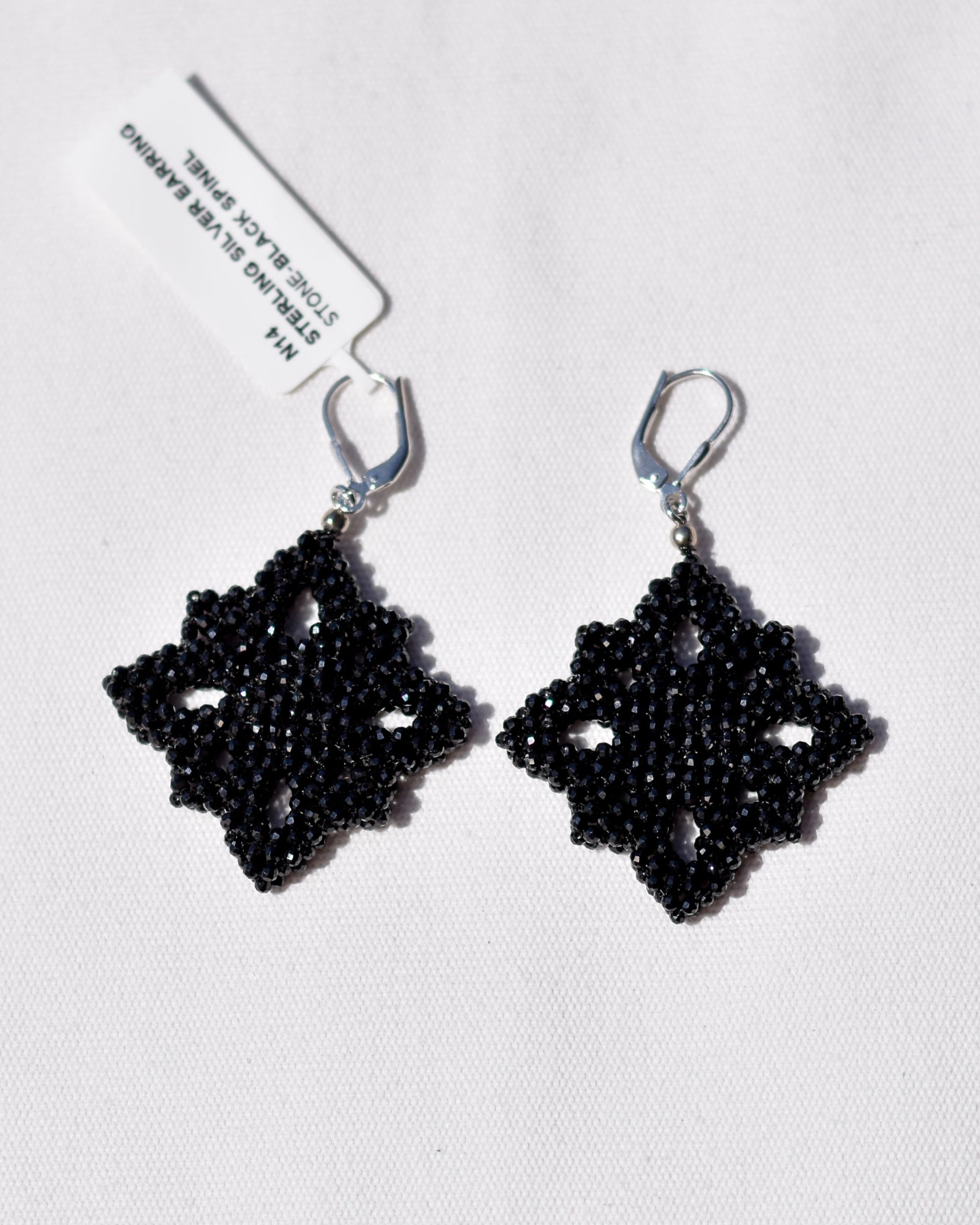 S.S. Faceted Black Spinel Beaded Flower Earrings