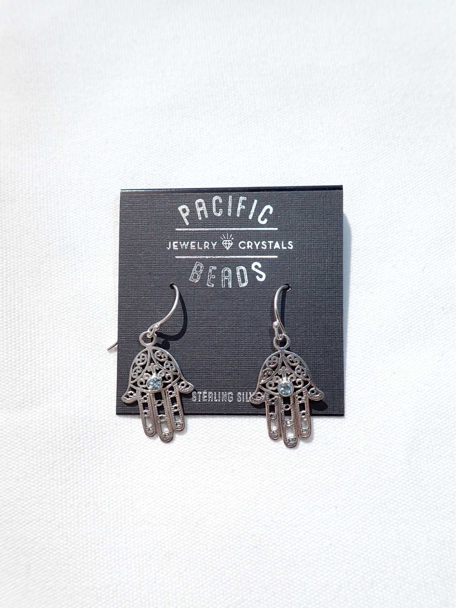 S.S. Faceted Blue Topaz Hamsa Earrings