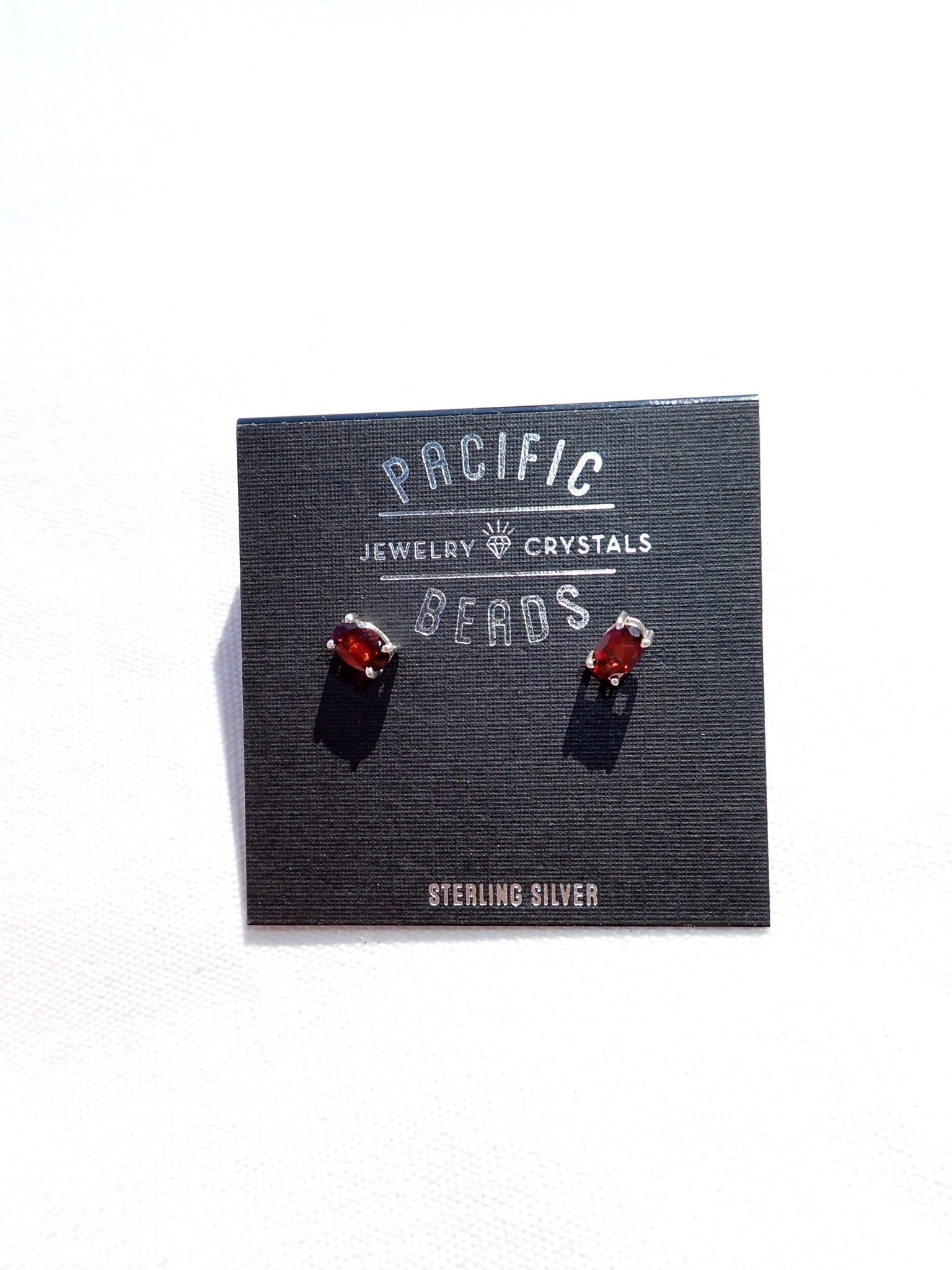 Faceted, oval garnet sterling silver stud earrings.