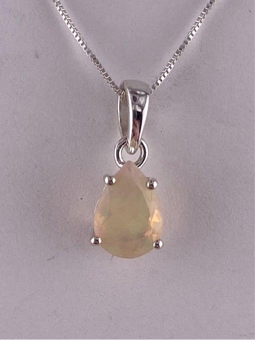 A faceted teardrop ethiopian opal set in sterling silver on a sterling silver box chain