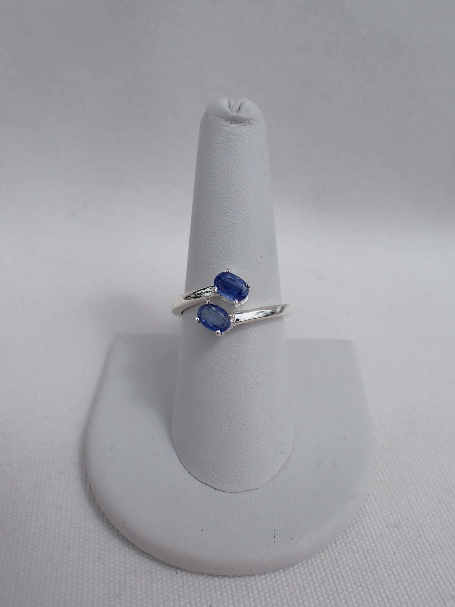 A pair of Himalayan kyanite is faceted in sterling silver bands that can adjust smaller.
