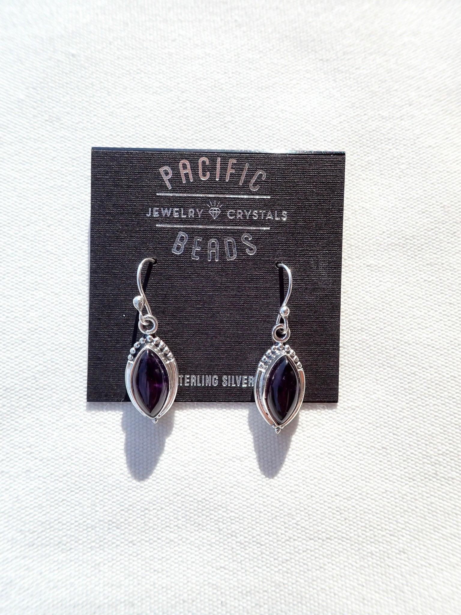 Sterling silver amethyst marquise drop earrings. Amethyst is the February birthstone and has been prized for thousands of years. In ancient civilizations amethyst was more costly than rubies and sapphires. The royal purple color used to symbolize Christ.