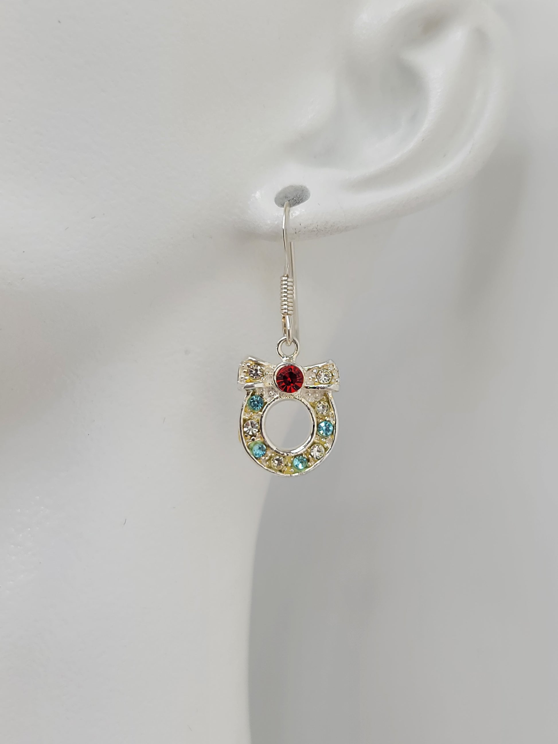 Sterling silver wreaths hold colorful cubic zirconia in these charming holiday earrings.