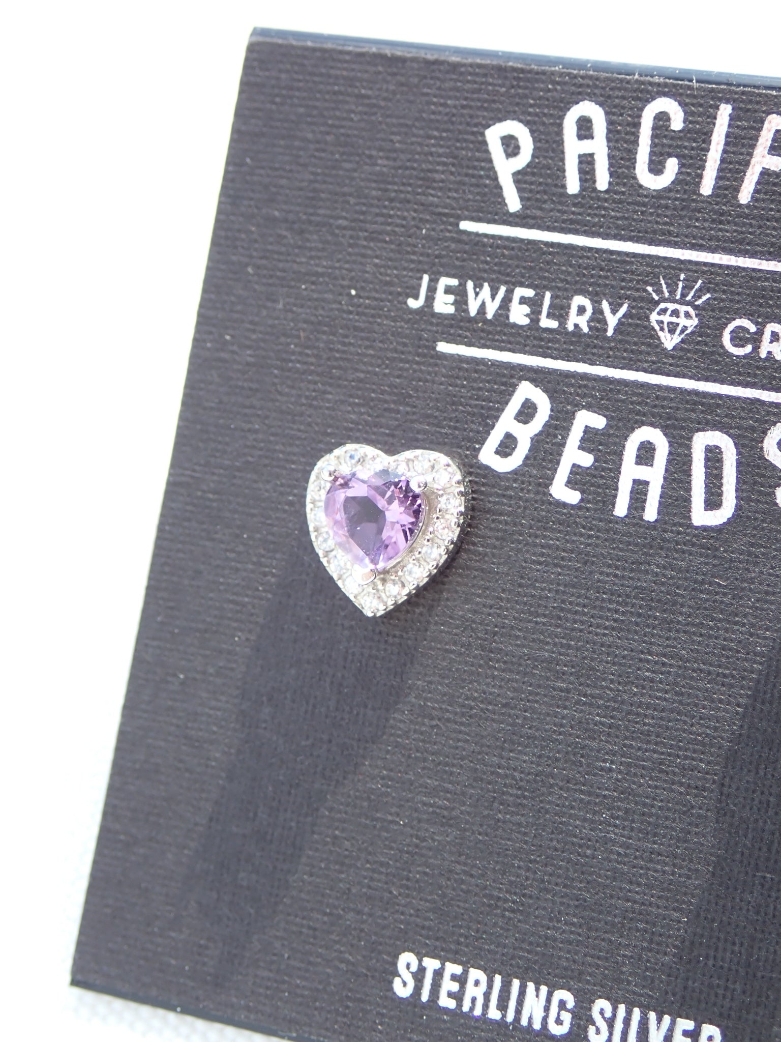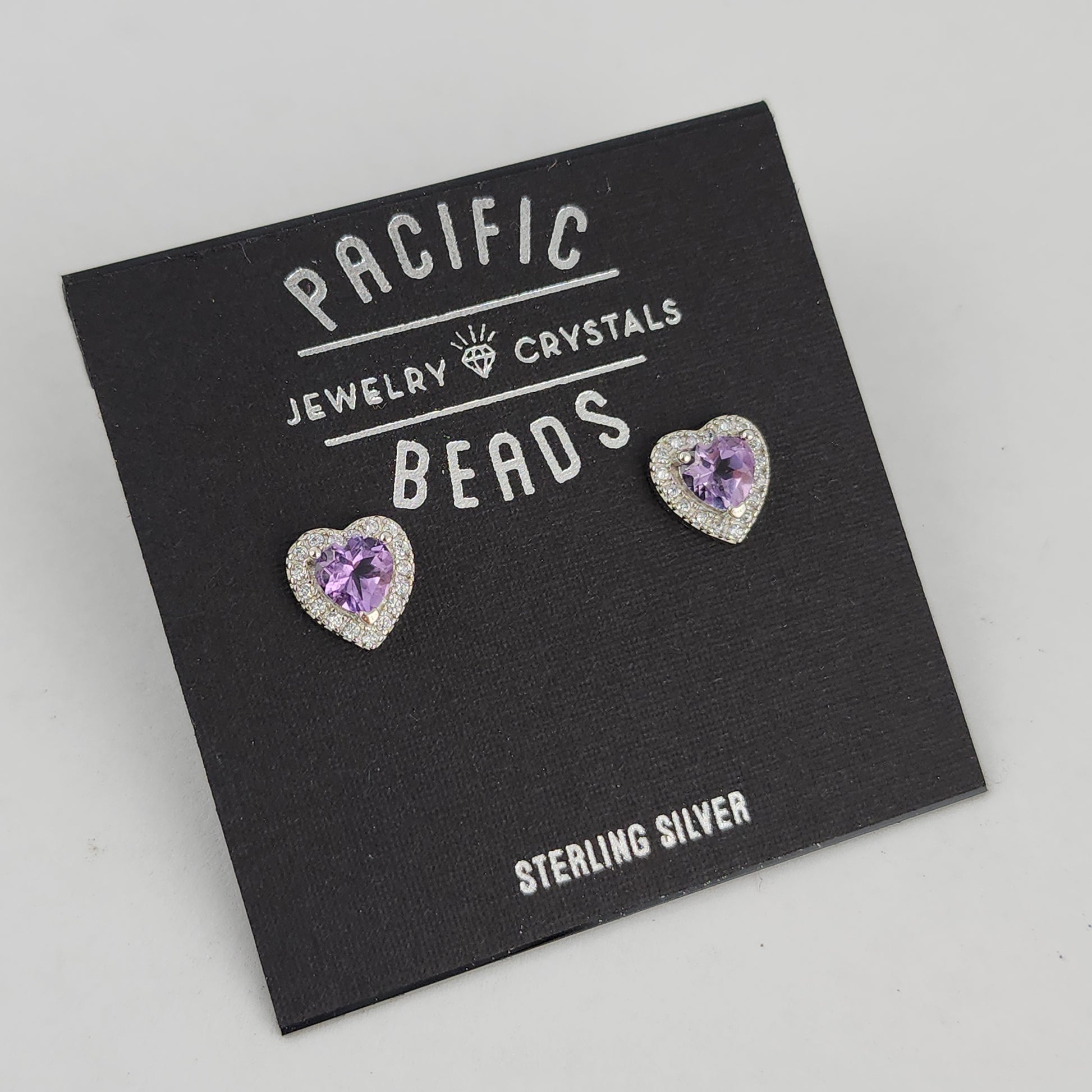 Sterling silver studs featuring an amethyst heart framed by genuine zircon stones.