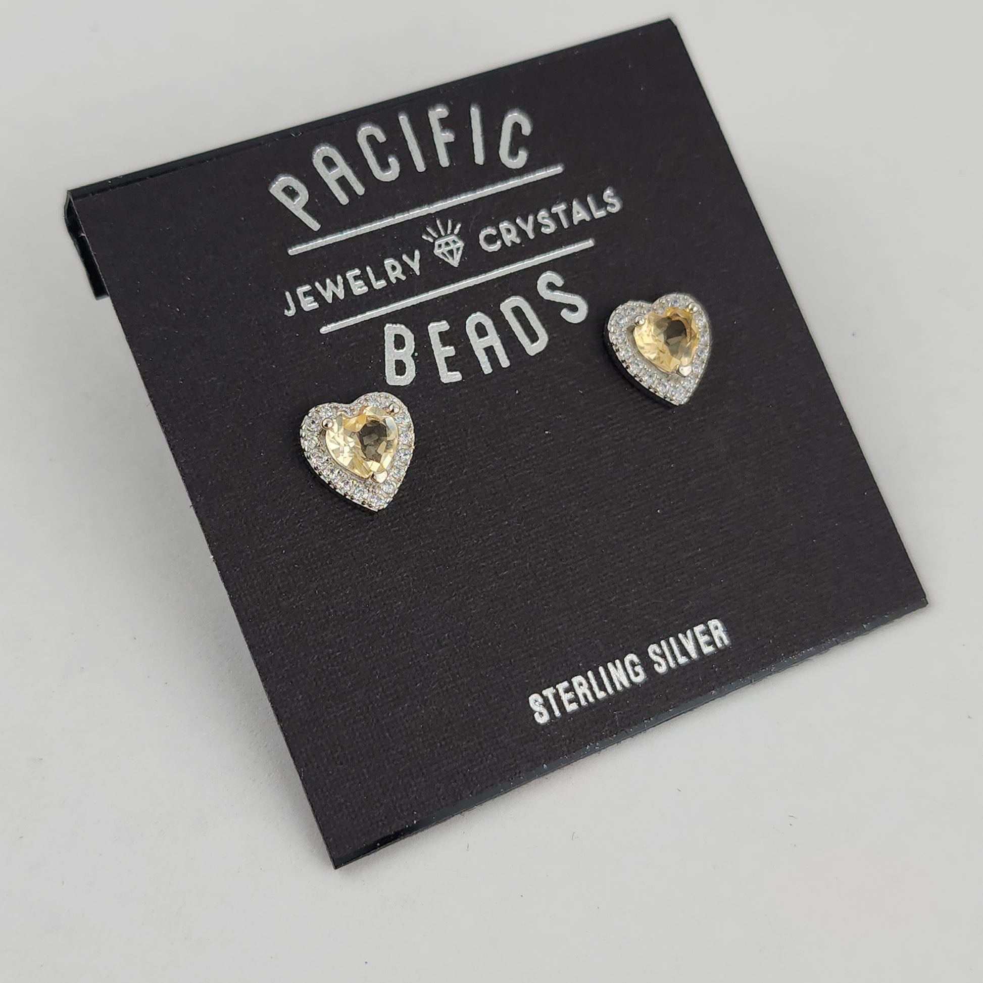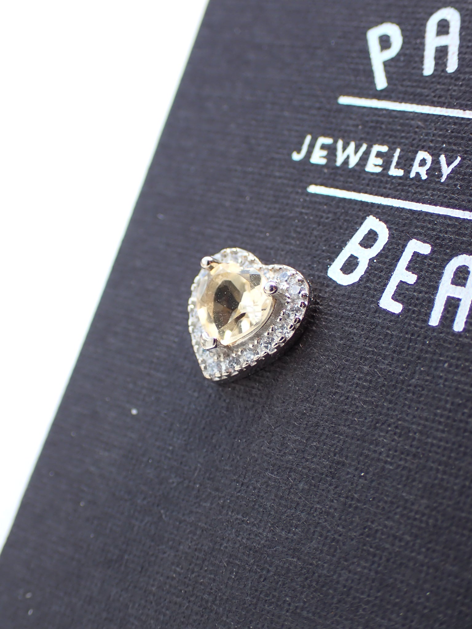 Sterling silver studs featuring a citrine heart framed by genuine zircon. Citrine is said to