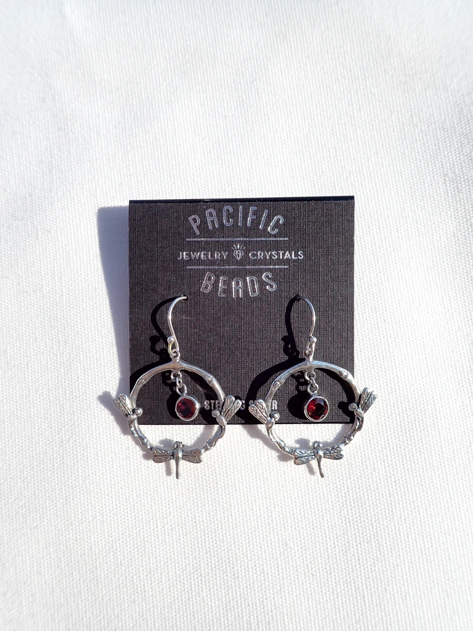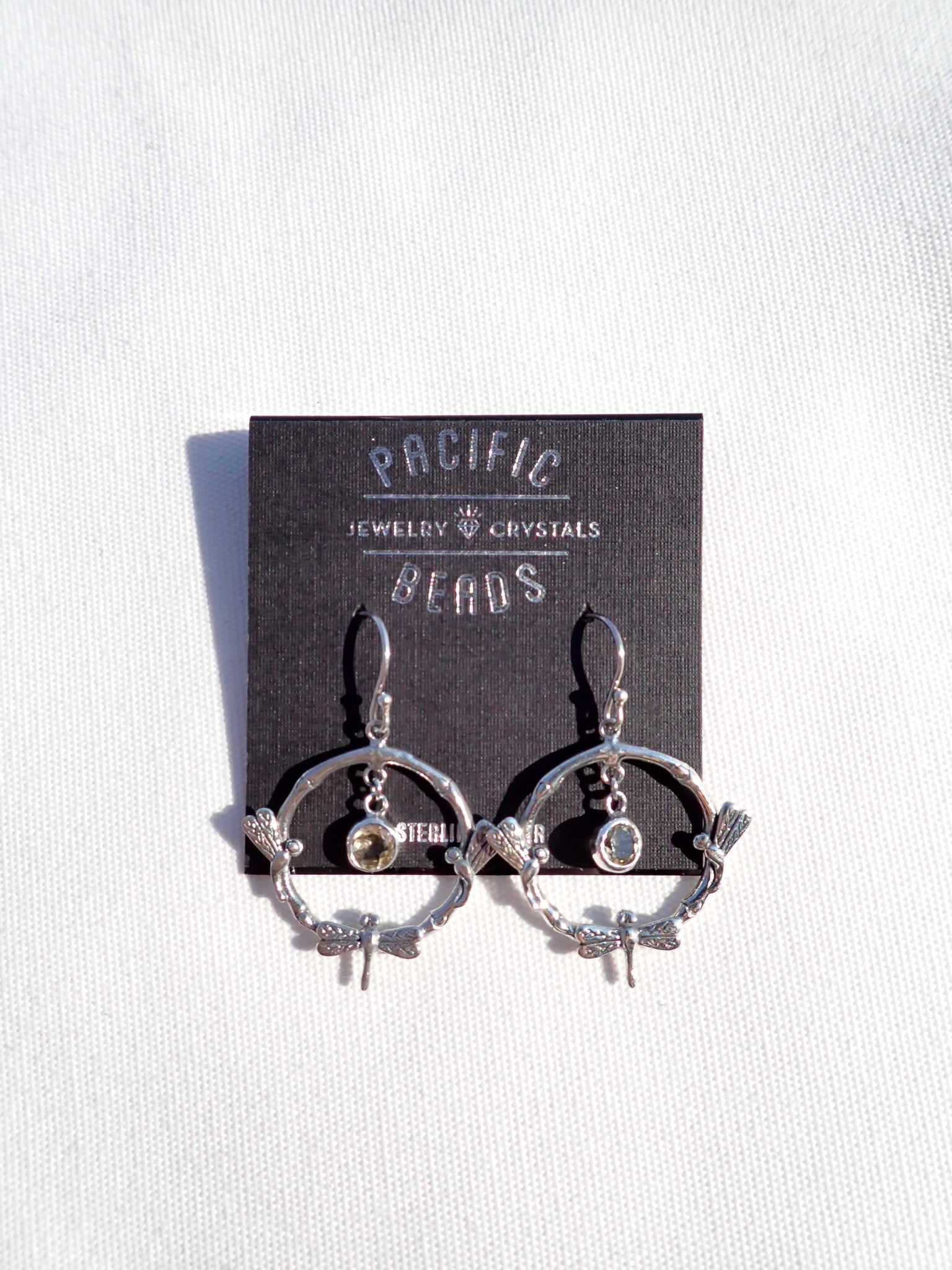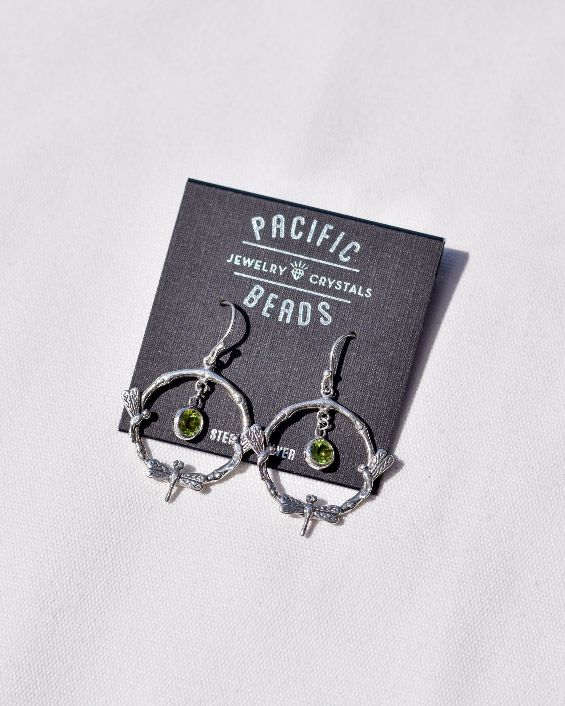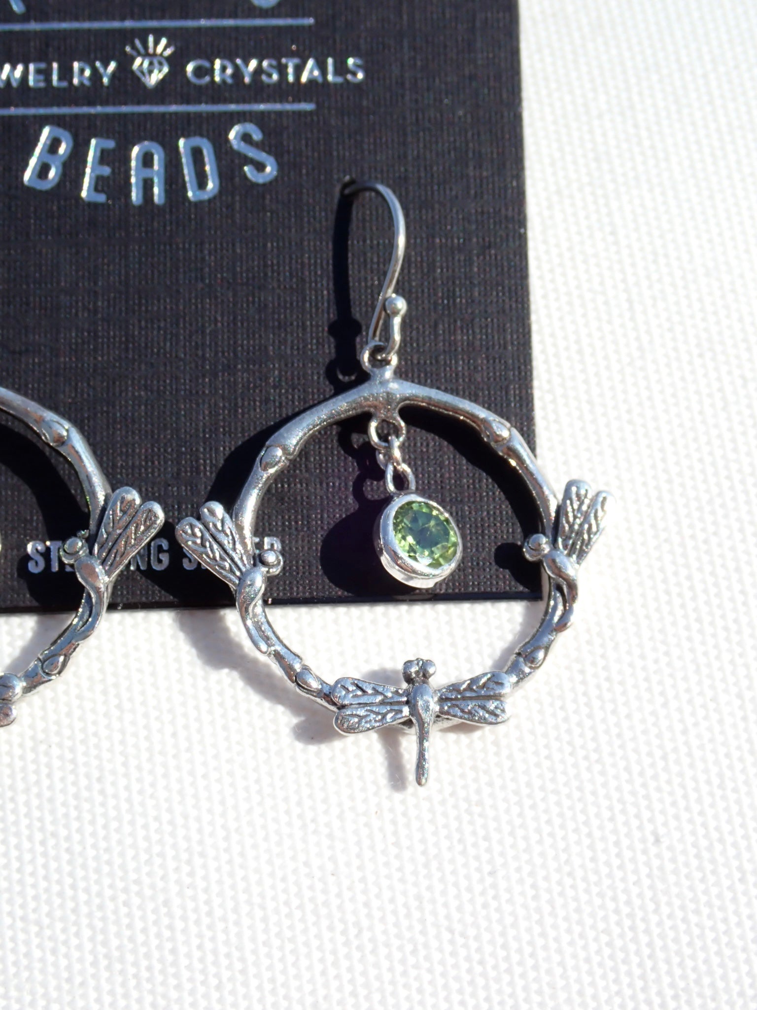 Three 925 sterling silver dragonflies circle around your choice of stone: Peridot (P), Garnet (G), or Citrine (C)